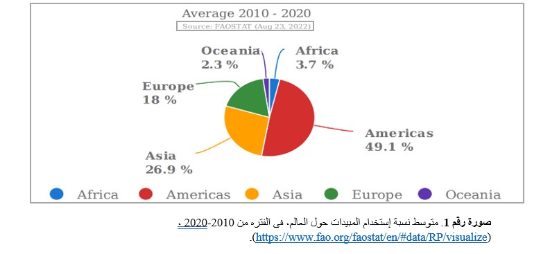 في ظل إحتياجات العالم المتزايدة لكميات كبيرة من الغذاء ، كان من الضروري إ ستخدام المبيدات لحماية المحاصيل الزراعية وتحقيق أعلى إنتاجية. بلغ متوسط إستهلاك مبيدات الآفات عالمياً أكثر من أربعة ملايين طن سنويًا عام 2019 (FAOSTAT). صورة رقم 1، توضح متوسط معدل إستهلاك المبيدات على المستوى القارى. كما موضح بهذه الصوره فإن معدل استهلاك المبيدات فى القارة الأفريقية هو الأقل على مستوى العالم، إلا ان هذه القارة تعانى من الأثار السلبية لإستخدام تلك المبيدات نتيجة الإستخدام غير المنضبط . يوجد أكثر من 1000 مبيد حشرات فى الأسواق العالمية، مثل هذا العدد الضخم من المبيدات يصعب من عملية المراقبة والتحكم فى الأستخدام الأمثل لها وضمان سلامة الغذاء المتداول بين الدول المختلفة.